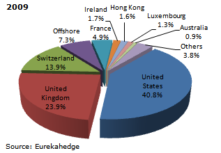 Figure 2 shows the change in the distribution of assets under management by manager location in 2007 and 2009, respectively.